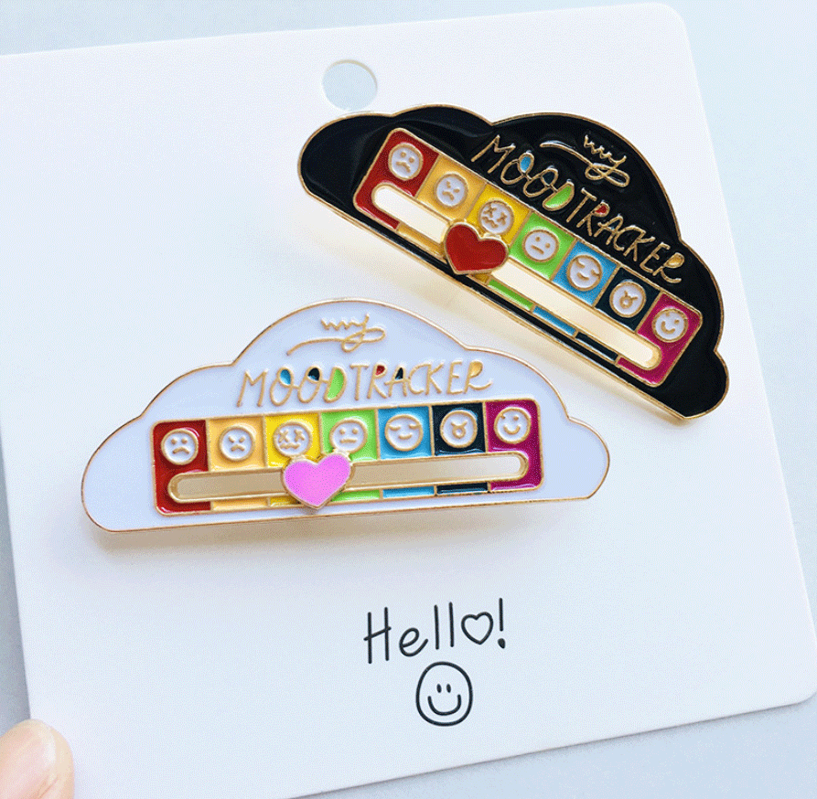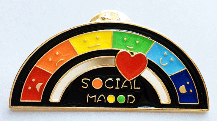 This Cartoon Social Expression Battery Brooch Fun Rainbow Mood Chart Change Badge is a playful mood & social battery tracker, with a sliding indicator and colorful emoticons. It is from badge manufacturer-Kotar/Yuya.
