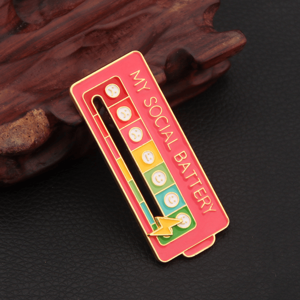 Cartoon Zinc Alloy Enamel Social Mood Battery Brooch Lapel Pin